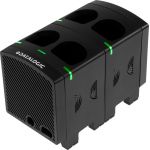Datalogic 4-slot battery charging station for PowerScan 9X00 and 9XX1 series scanners. Charges up to four batteries simultaneously. Power supply sold separately