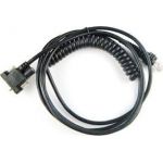 Datalogic RS-232 cable with RJ10 plug, coiled design, 3.6m length. Draws power from terminal for efficient and reliable scanner connection