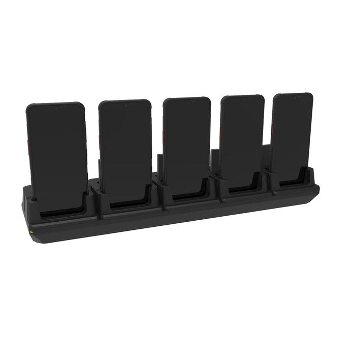 The KOAMTAC 5-Slot Charging Cradle with spare battery charging and EU plug is an advanced multi-device docking solution purpose-built for Samsung XCover 7 fleets in enterprise environments. Designed to support fast-paced operations, this cradle allows simultaneous charging of up to five XCover 7 devices plus spare batteries, ensuring your workforce always has power during demanding shifts.